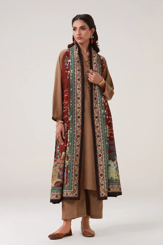 Manto Women's 2 Piece Stitched Green Kaftaan Set with Urdu Calligraphy