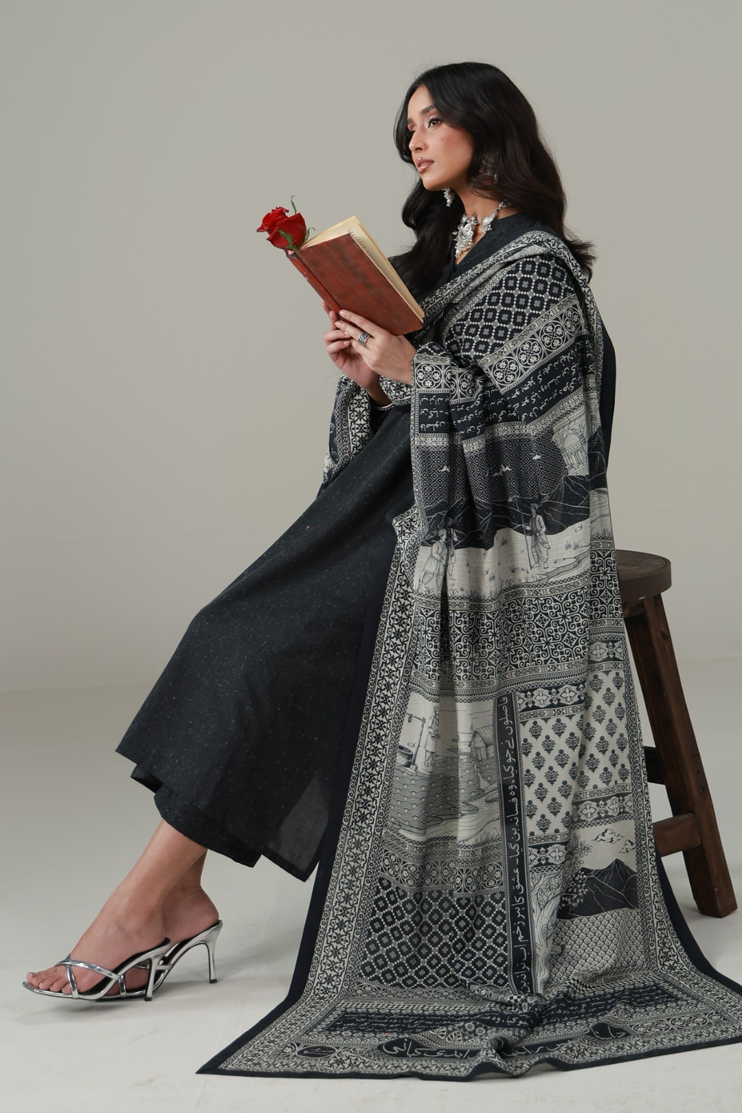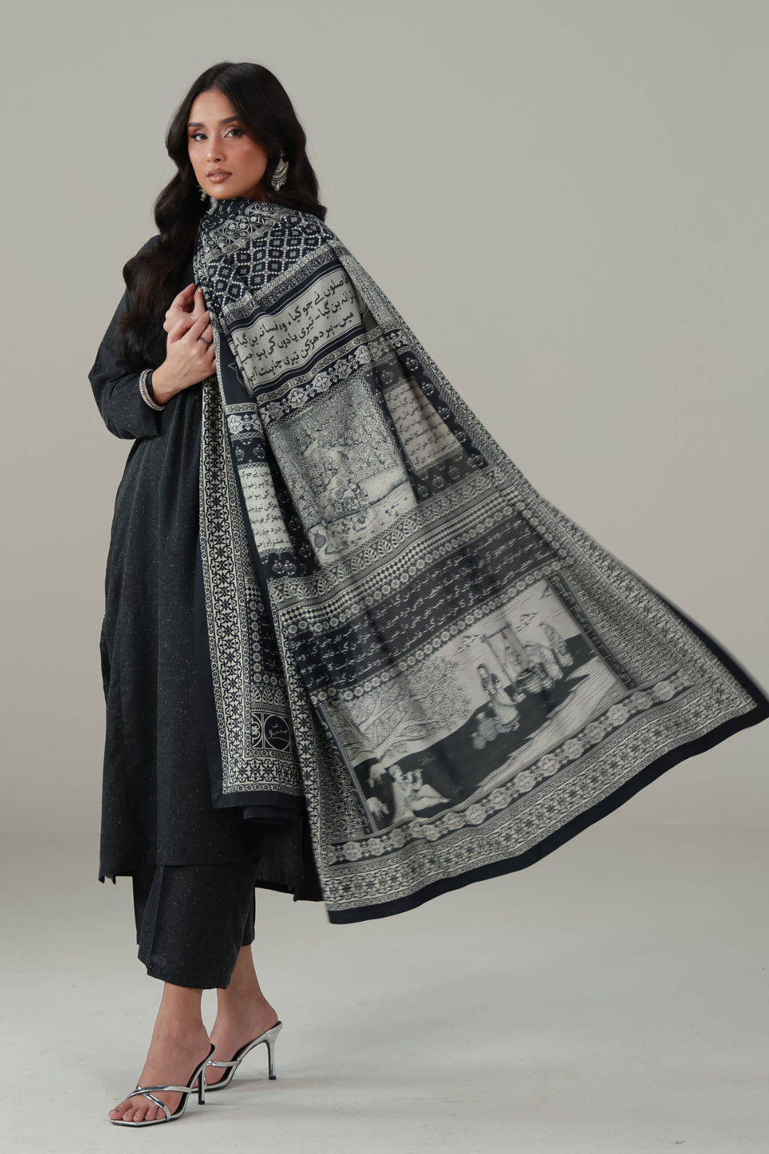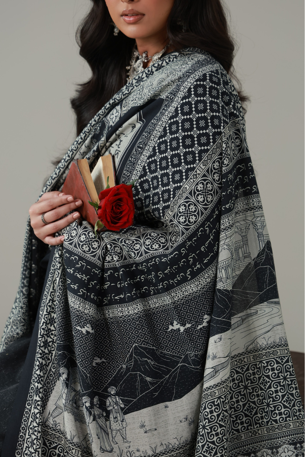 Printed cotton silk odhni, featuring Urdu poetry calligraphed throughout, honoring the essence of love.