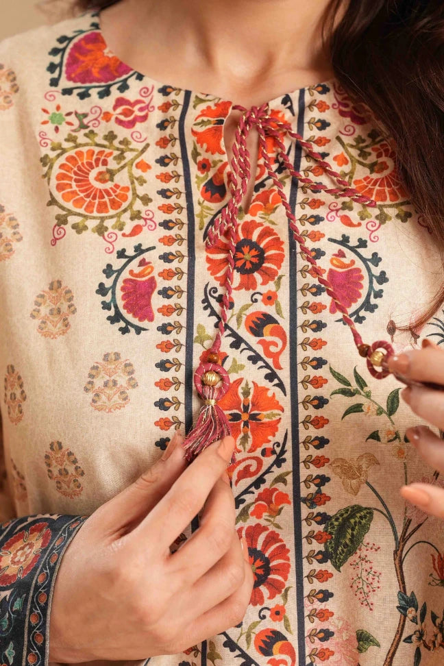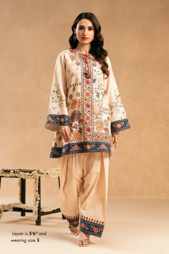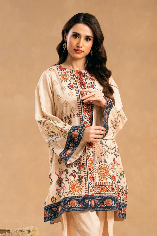 Raast Co-Ord Set is a 2-piece set made in lawn. Featuring a short shirt paired with farshi shalwar and the words of Allama Iqbal calligraphed throughout.