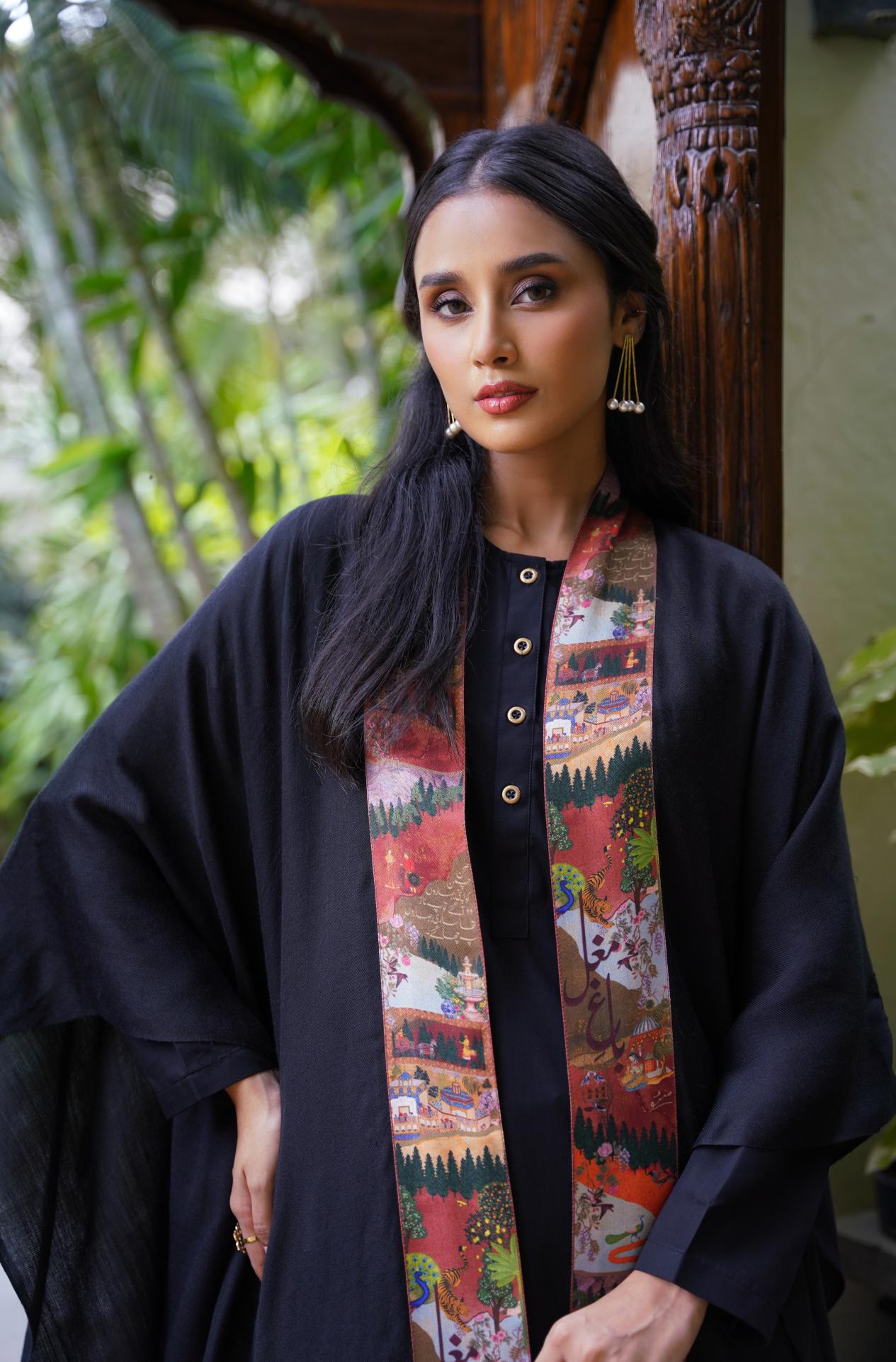 Unisex Wrap-around Style Cape, Made from Acrylic Wool, Featuring Words of Jigar Murad Abadi.