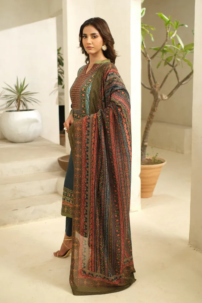 Printed Swiss lawn dupatta featuring Urdu calligraphy of poetry by Firaq Gorakhpuri.