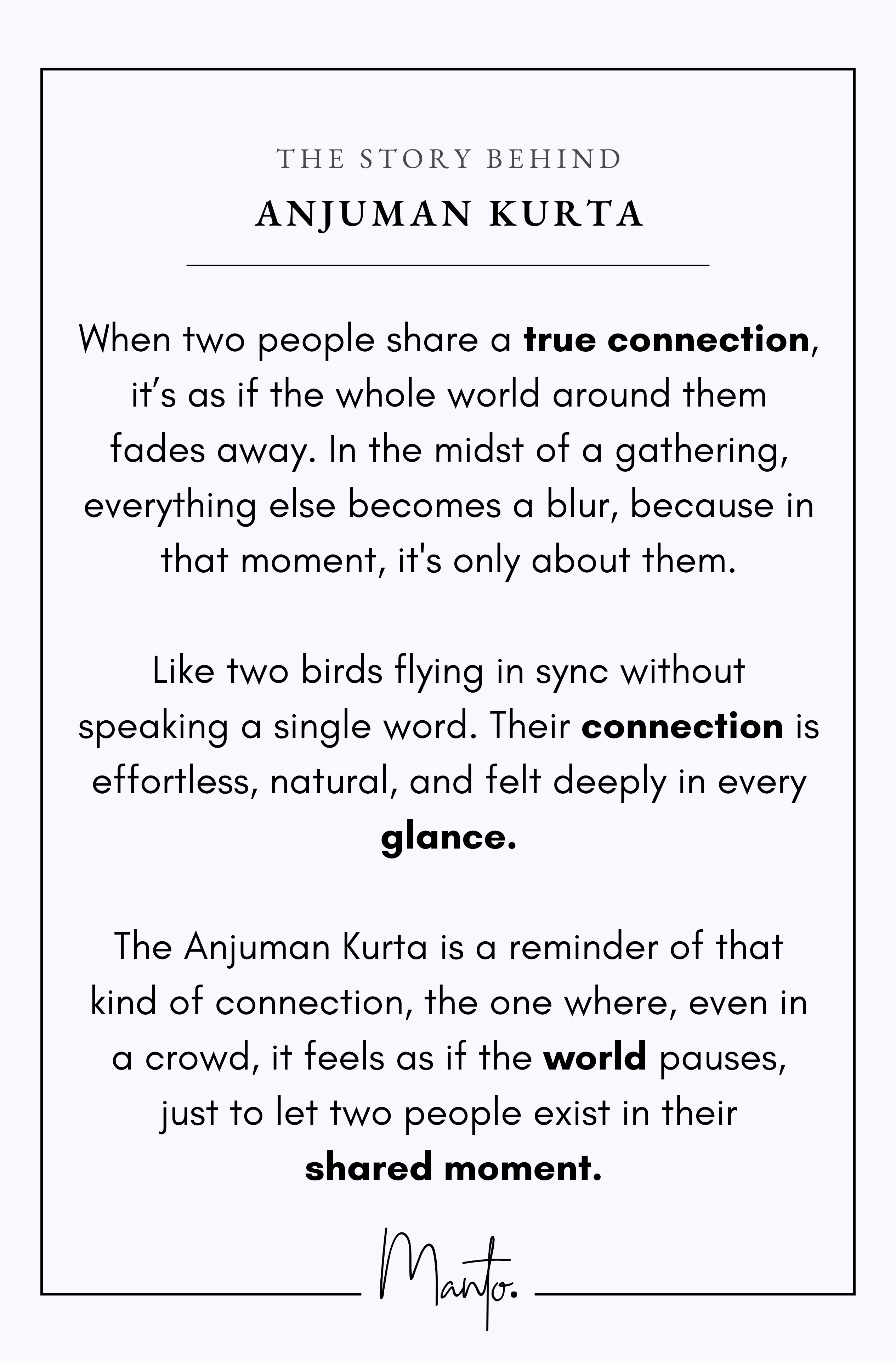 The Anjuman Kurta is a reminder of that kind of connection, the one where, even in a crowd, it feels as if the world pauses, just to let two people exist in their shared moment.