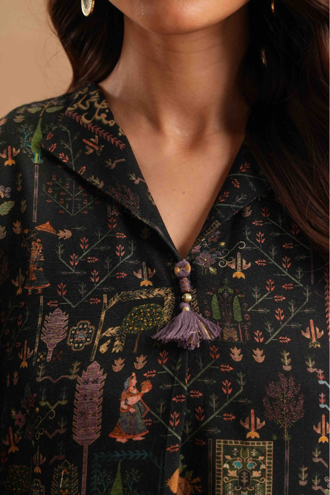 Bagh-e-Mughal Kurta is made from cotton silk, features a loose A-line silhouette with pockets for everyday ease and has urdu poetry calligraphed across.
