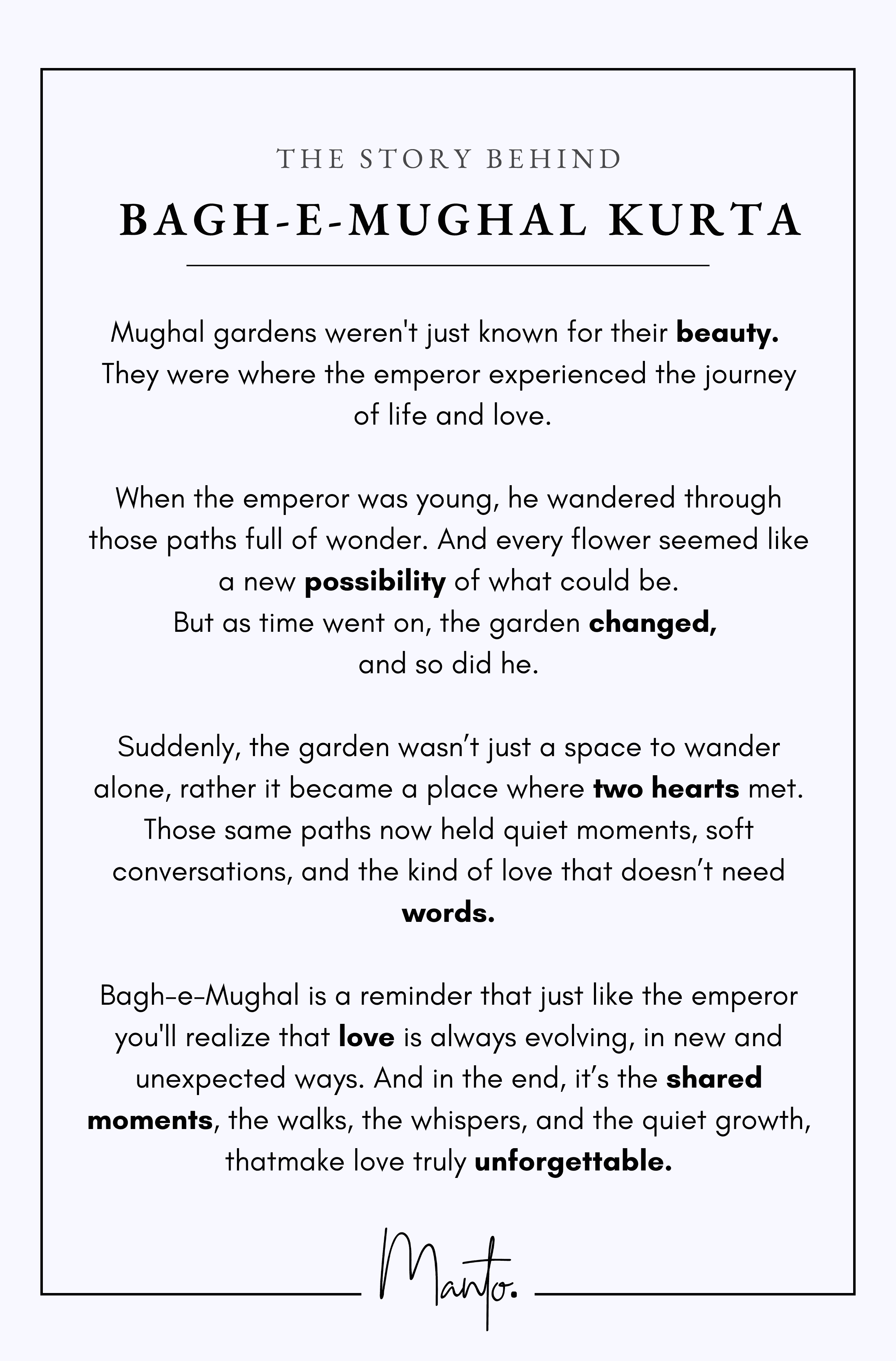 Bagh-e-Mughal is a reminder that just like the emperor you'll realize that love is always evolving, in new and unexpected ways. And in the end, it’s the shared moments, the walks, the whispers, and the quiet growth, that make love truly unforgettable.
