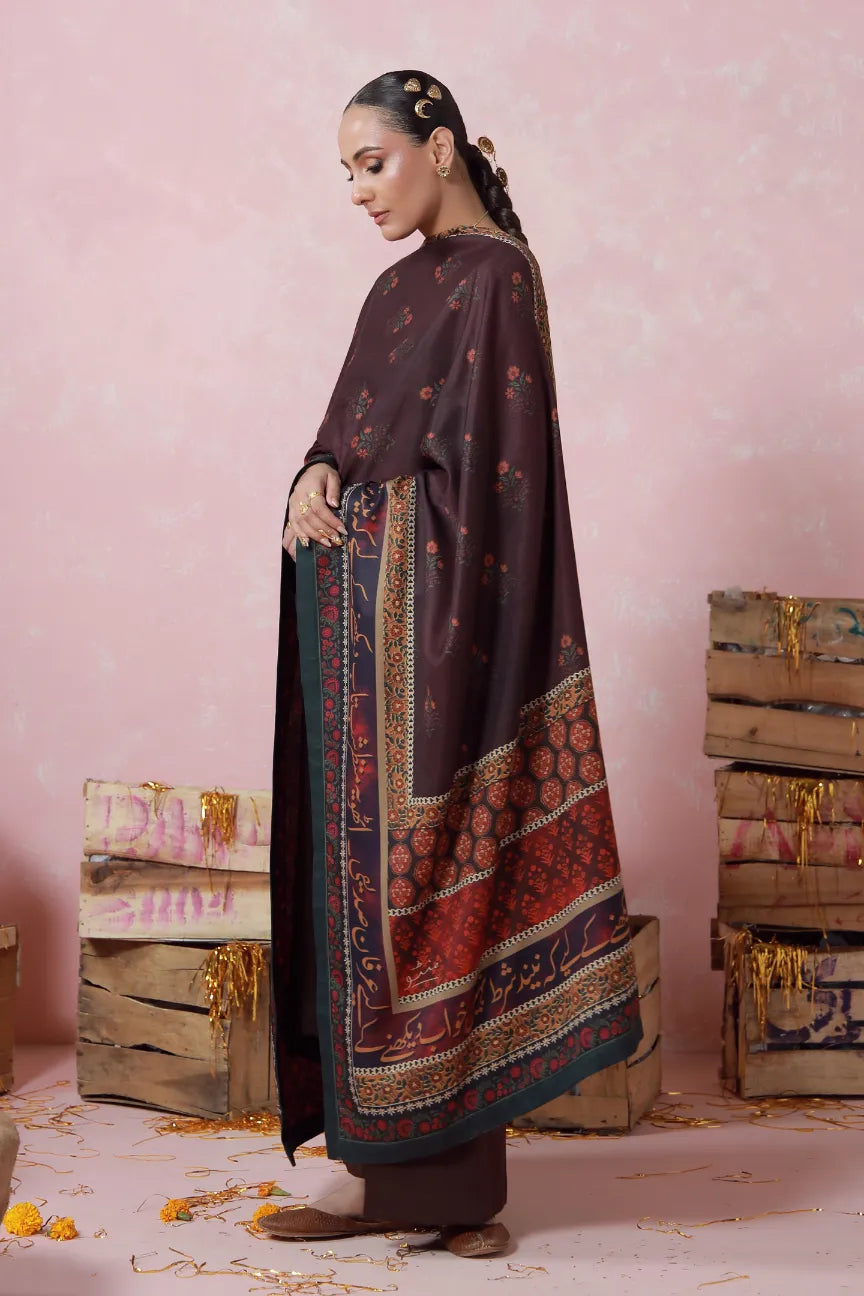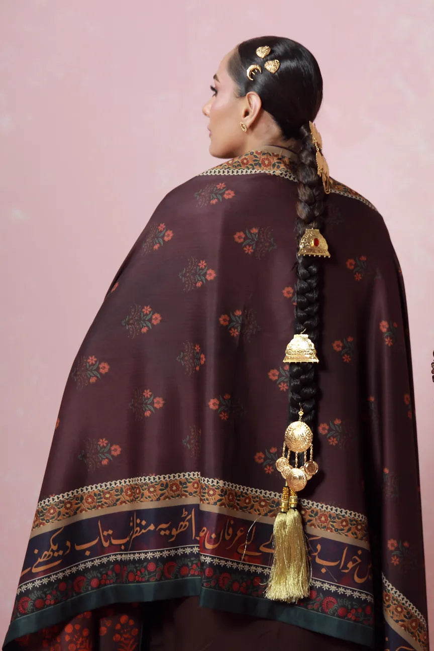 Double-sided unisex shawl, made from herringbone, featuring the words of Irfan Siddiqui calligraphed throughout.