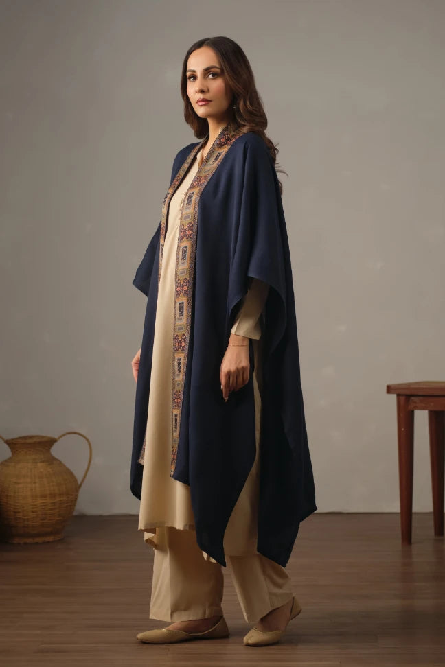 Unisex Wrap-around Style Cape, made from Acrylic Wool, features calligraphy of Urdu words.