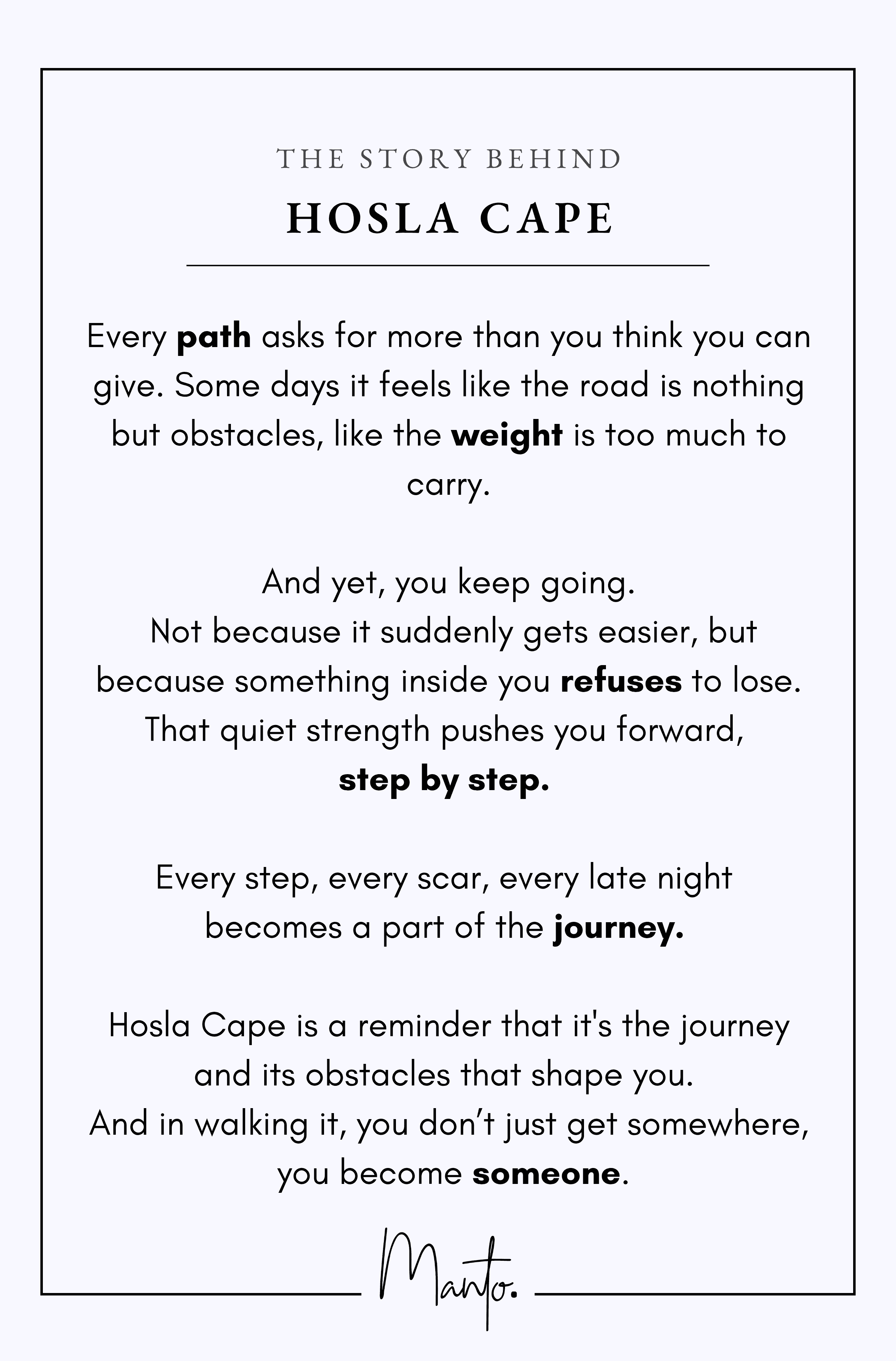 Hosla Cape is a reminder that it's the journey and its obstacles that shape you. And in walking it, you don’t just get somewhere, you become someone.