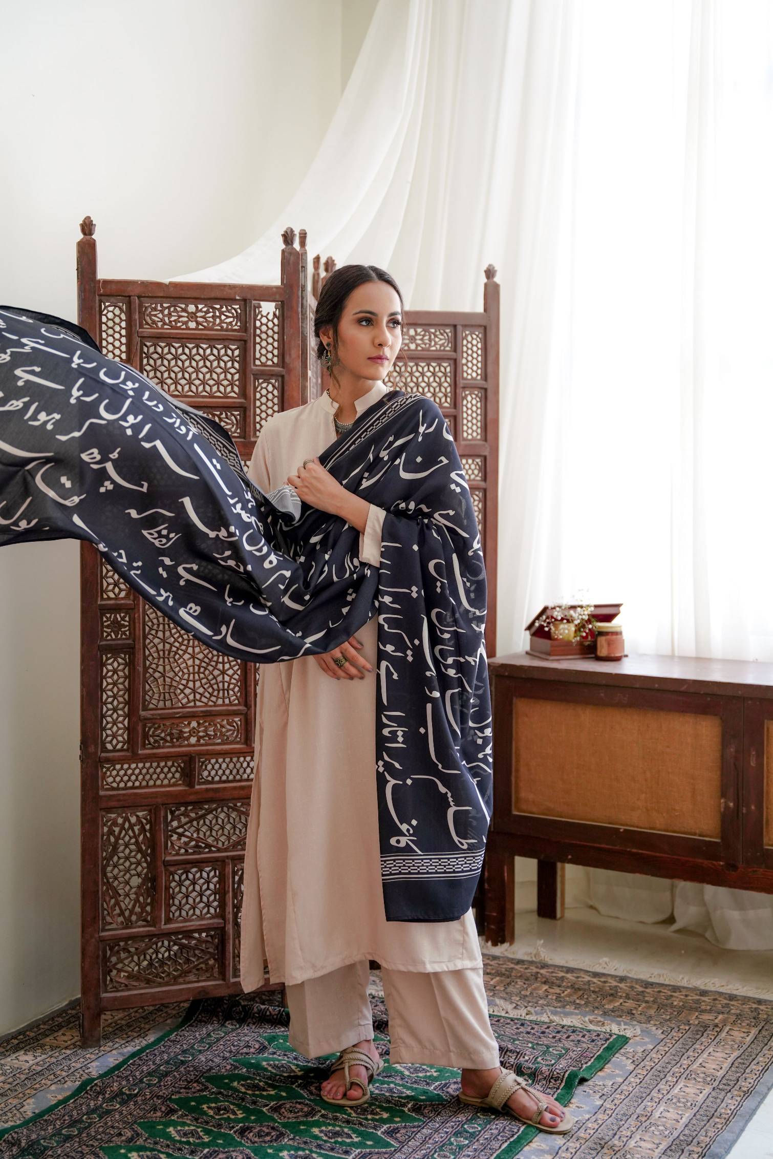 Our Best Seller Printed Cotton Silk Bol Odhni Features Beautiful Urdu Words of Shaukat Wasti. Available in 7 Colors!