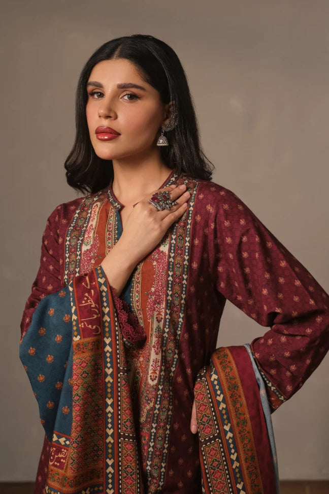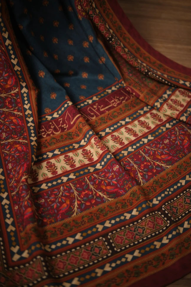 3-piece premium cotton silk set, featuring poetry of Manzoor Hashmi on the calligraphed on the Co-Ord & Odhni!