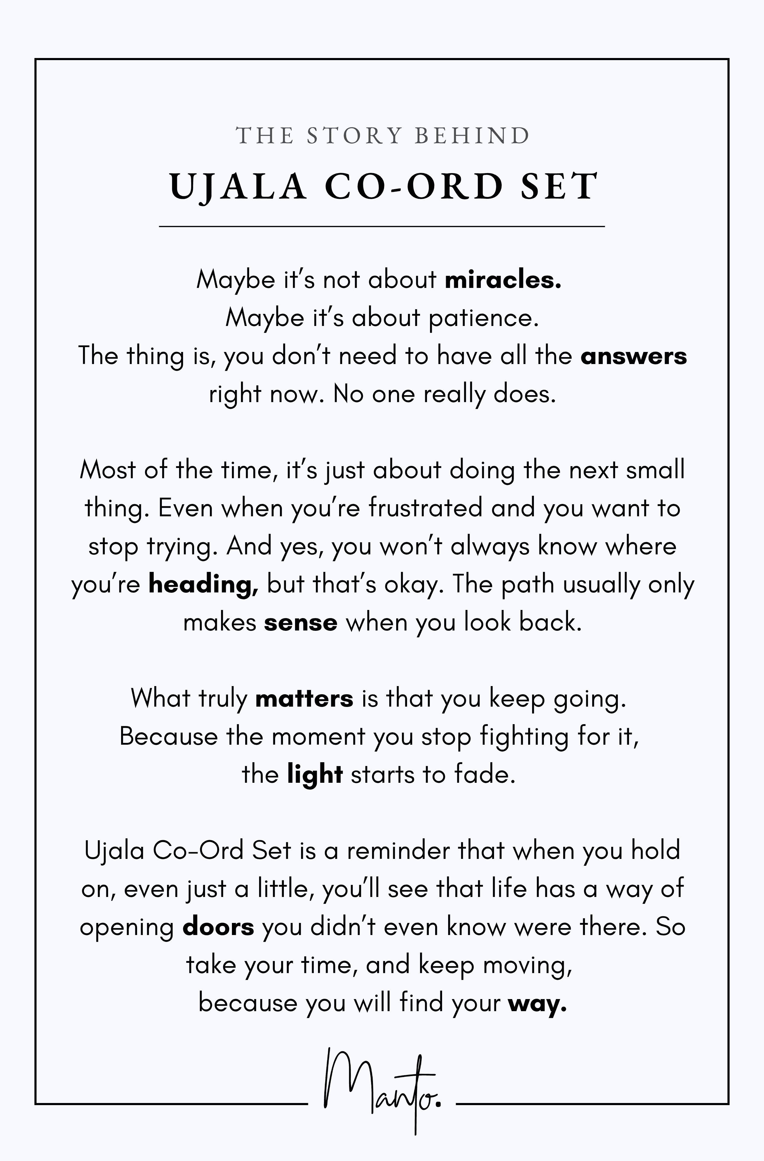 Ujala Co-Ord Set is a reminder that when you hold on, even just a little, you’ll see that life has a way of opening doors you didn’t even know were there. So take your time, and keep moving, because you will find your way.
