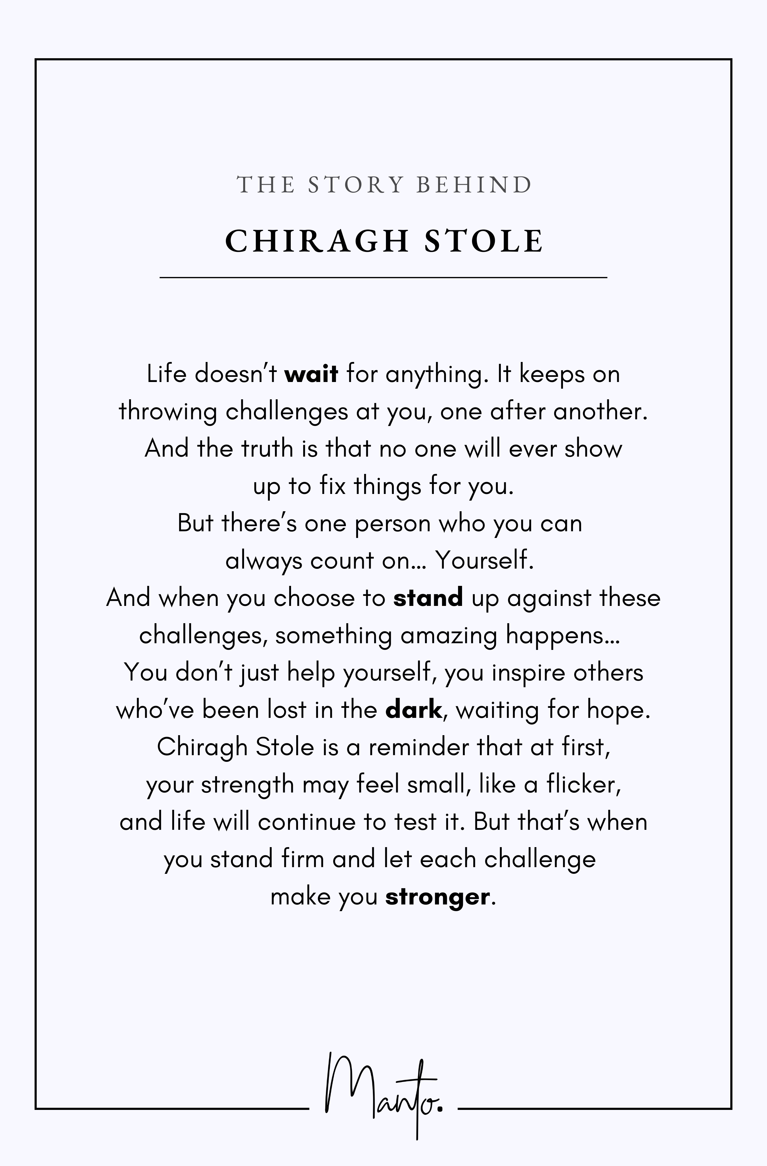 Chiragh Stole is a reminder that at first, your strength may feel small, like a flicker, and life will continue to test it. But that’s when you stand firm and let each challenge make you stronger.