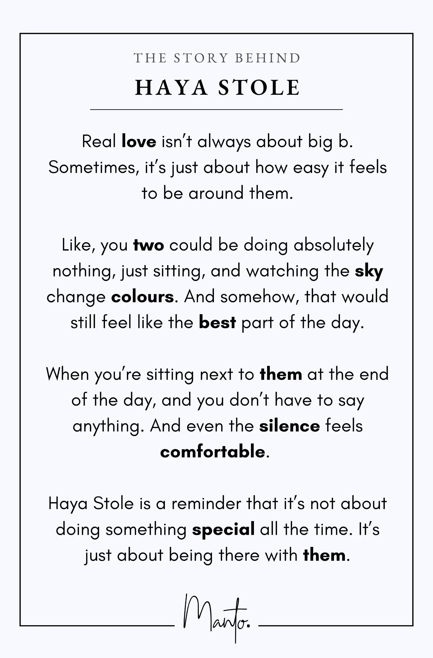 Haya Stole is a reminder that it’s not about doing something special all the time. It’s just about being there with them.
